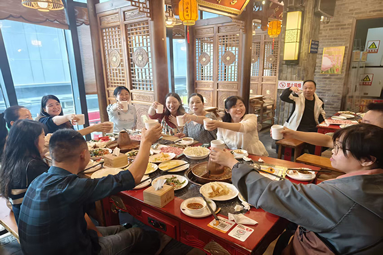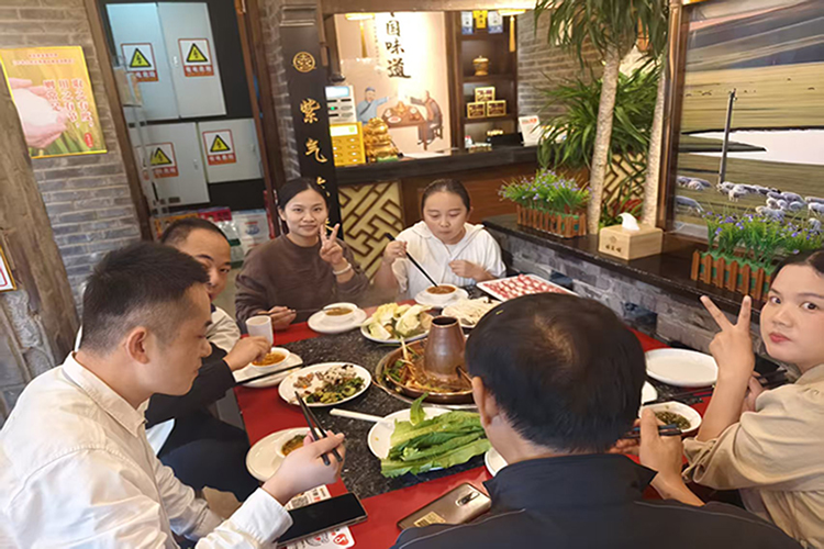 鮮嫩的羊肉、豐富的配菜陸續(xù)上桌,大家舉箸暢談,歡聲笑語(yǔ)與鍋底的沸騰聲交織。平日里在不同崗位忙碌的同事們,此刻圍坐一桌,卸下了工作的緊張,交流著生活中的趣事,暢談著對(duì)未來(lái)的展望。公司領(lǐng)導(dǎo)們也融入其中,親切地與每一桌的員工交流,向大家致以節(jié)日的問(wèn)候,并感謝大家近期的辛勤努力??曜悠鹇溟g,不僅是美味的傳遞,更是情感的升溫與團(tuán)隊(duì)的融合。這場(chǎng)羊肉火鍋宴,仿佛一個(gè)溫馨的大家庭聚會(huì),暖了胃,更暖了心,將團(tuán)隊(duì)凝聚力在這升騰的熱氣中推向新的高度。